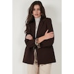 Lela Standart Fit Mono Yaka Desenli Astar Detaylı Blazer Bayan Ceket 6524003 Kahve