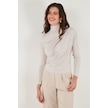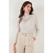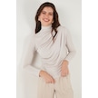 Lela Streç Büzgü Detaylı Slim Fit Dik Yaka Bayan Bluz 669925 Koyu Bej