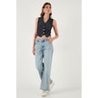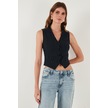 Lela Streç Fitted Fit V Yaka Düğmeli Bayan Yelek 5865971 Lacivert-Beyaz