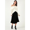 Lela Streç Regular Fit Yüksek Bel Midi Boy Süet Çan Bayan Etek 5866180 Siyah