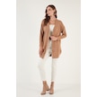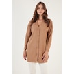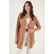 Lela V Yaka Düğmeli Uzun Triko Bayan Hırka 4616040Y Camel