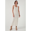 Eteği Volanlı Uzun Elbise Kırık Beyaz