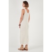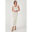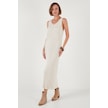 Lela V Yaka Fitilli Uzun Triko Bayan Elbise 4616169 Açık Taş