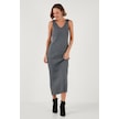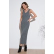 Lela V Yaka Fitilli Uzun Triko Bayan Elbise 4616169 Koyu Gri