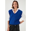 Lela V Yaka Örme Triko Bayan Süveter 4616105Y Saks