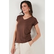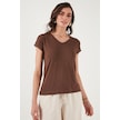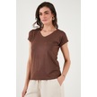 Lela V Yaka Rahat Kesim Yırtmaçlı Bayan Bluz 5862000 Kahve
