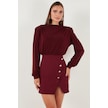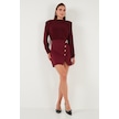 Lela Vatkalı Regular Fit Yırtmaç Detaylı Dik Yaka Mini Boy Bayan Elbise 611El751 Bordo