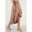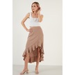 Lela Volanlı Midi Boy Yırtmaçlı Bayan Etek 6058387 Vizon