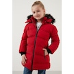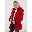 Lela Yakası Suni Kürklü Peluş Astarlı Çıkarılabilir Kapüşonlu Dar Kesim Kışlık Kız Çocuk Mont 5760002 Kırmızı