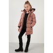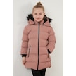 Lela Yakası Suni Kürklü Peluş Astarlı Çıkarılabilir Kapüşonlu Dar Kesim Kışlık Kız Çocuk Mont 5760002 Pudra