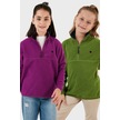 Lela Yumuşak Dokulu Fermuarlı Dik Yaka Şardonlu 2'Li Paket Çocuk Polar 5905002S2 Fıstık Yeşil-Mor