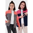 Lela Yumuşak Dokulu Fermuarlı Renk Bloklu Dik Yaka Cepli 2'Li Paket Hırka Çocuk Polar 5905001S2 Fuşya Lacivert-Somon Gri
