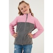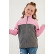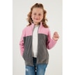Lela Yumuşak Dokulu Fermuarlı Renk Bloklu Dik Yaka Cepli Hırka Unisex Çocuk Polar 5905001 Şeker Pembe-Gri