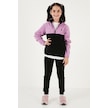 Lela Yumuşak Dokulu Yarım Fermuarlı Renk Bloklu Dik Yaka 2'Li Paket Çocuk Polar 5905004S2 Lila Siyah-Somon Gri