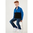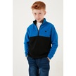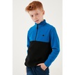 Lela Yumuşak Dokulu Yarım Fermuarlı Renk Bloklu Dik Yaka Unisex Çocuk Polar 5905004 Saks-Siyah