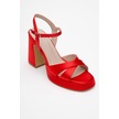 Lello Kırmızı Saten Kadın Platform Topuklu Ayakkabı Kırmızı