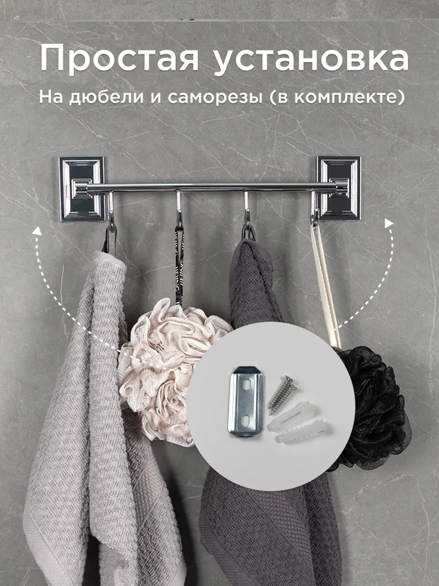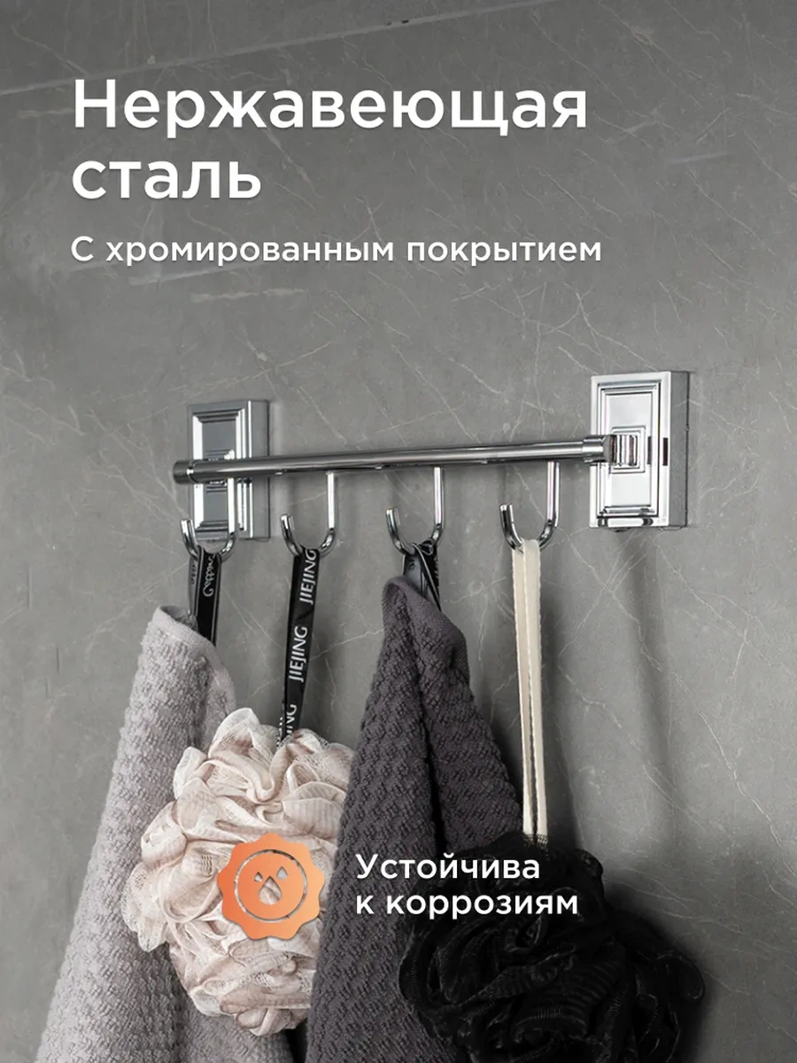 Yunboo 304 Paslanmaz Çelik 5 Barlı 180 Dönebilen, Delme/delmesiz Montajlı, Çok Amaçlı Kancalı Havlu Rakımı 34.5cm Gümüş