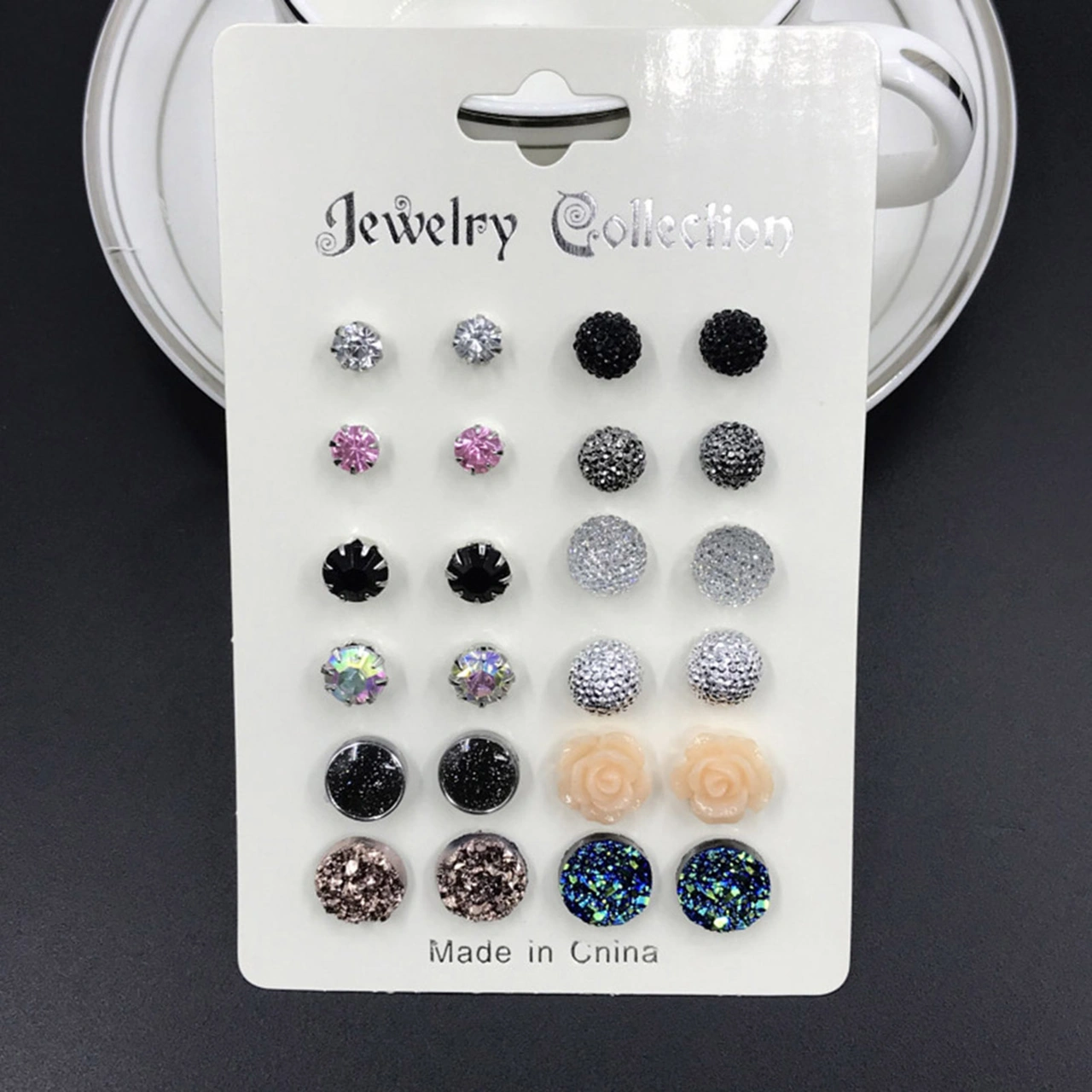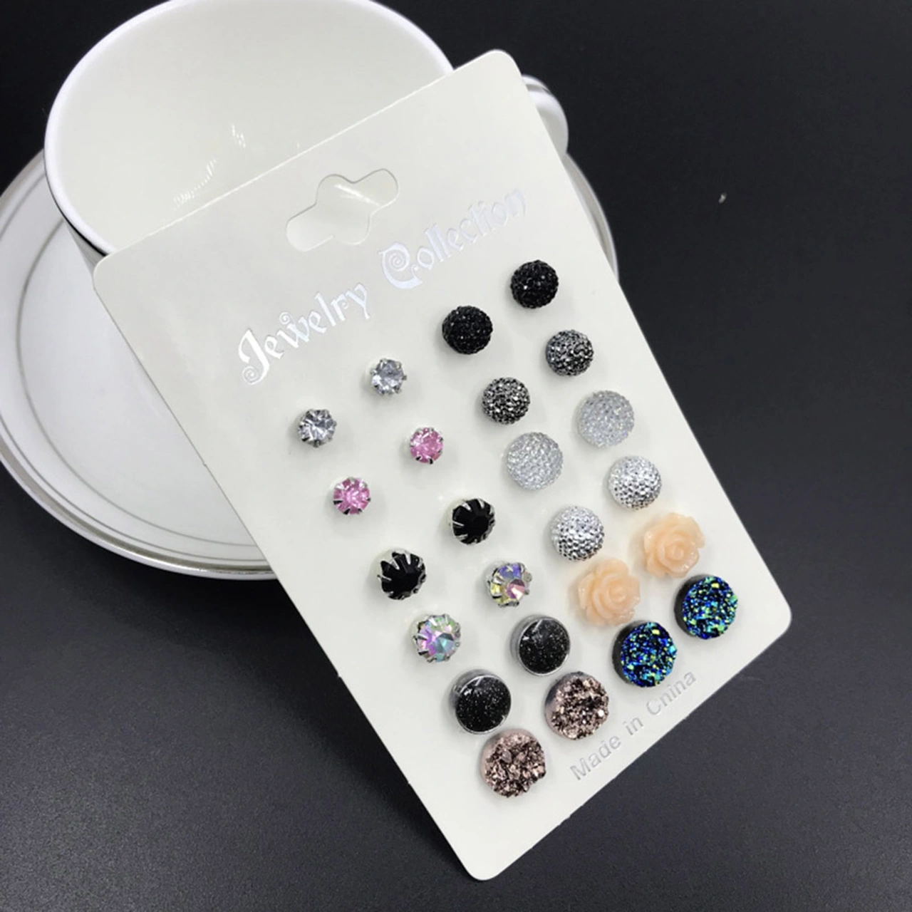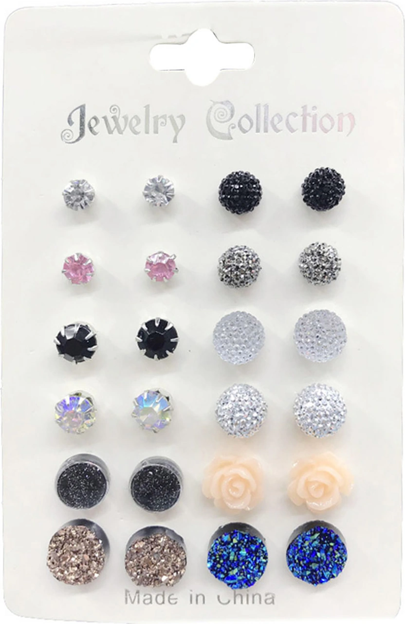 Lemestar 12 Çift Renkli Taşlı Metal Küpe Seti - Zirve Tarz Ve Güzellik İçin Sade Stüdyo Accessuarı 8-12mm Diğer