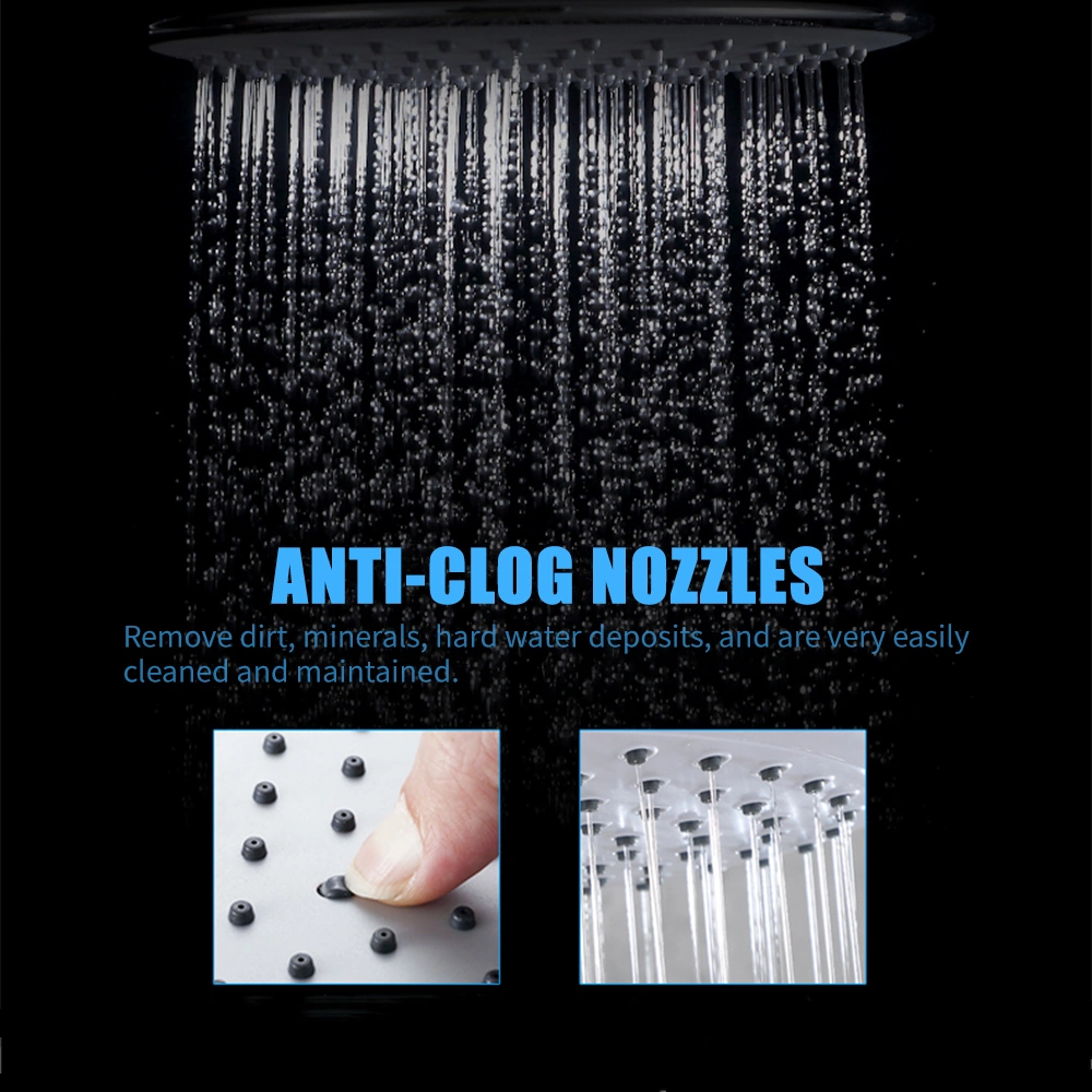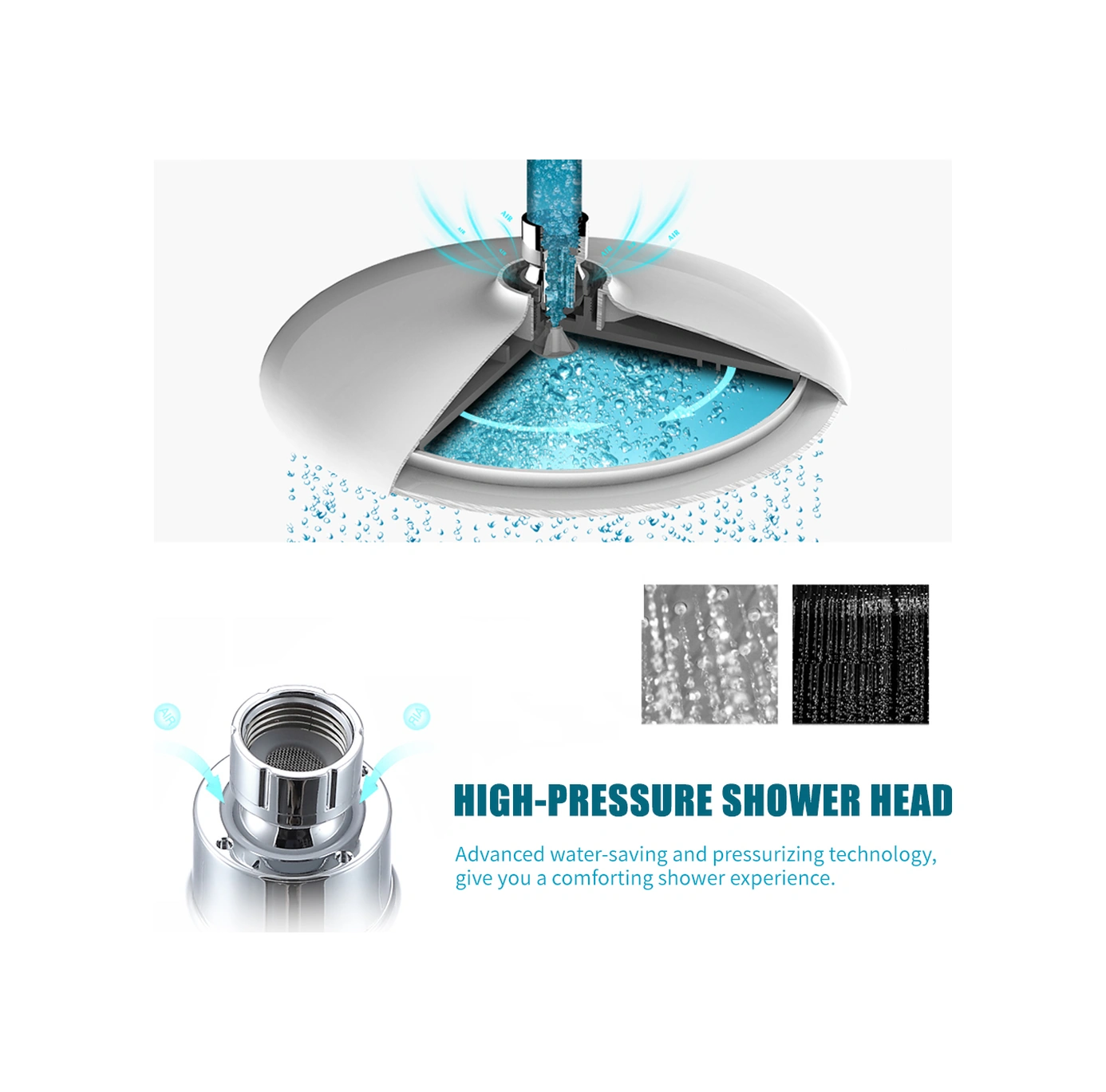 Lemestar 21cm Dairesel Abs Duş Başlığı, G1/2 Bağlantı, Otomatik Temizleme Uçlar, Yüksek Basınçlı Ve Su Tasarruflu, Çelik Kaplama Boru Hariç Gümüş