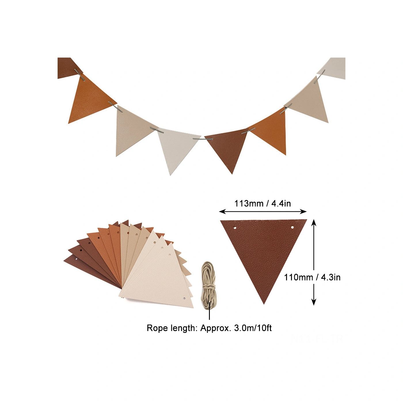 Lemestar 3 Metre Deri İp İle Kamp Bayrakları Seti - Kahverengi, 12 Adet Bayrak, Dış Mekan Kullanıma Uygun Kahverengi