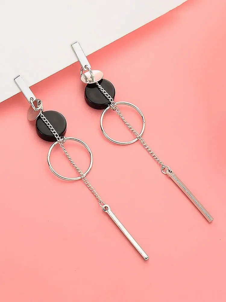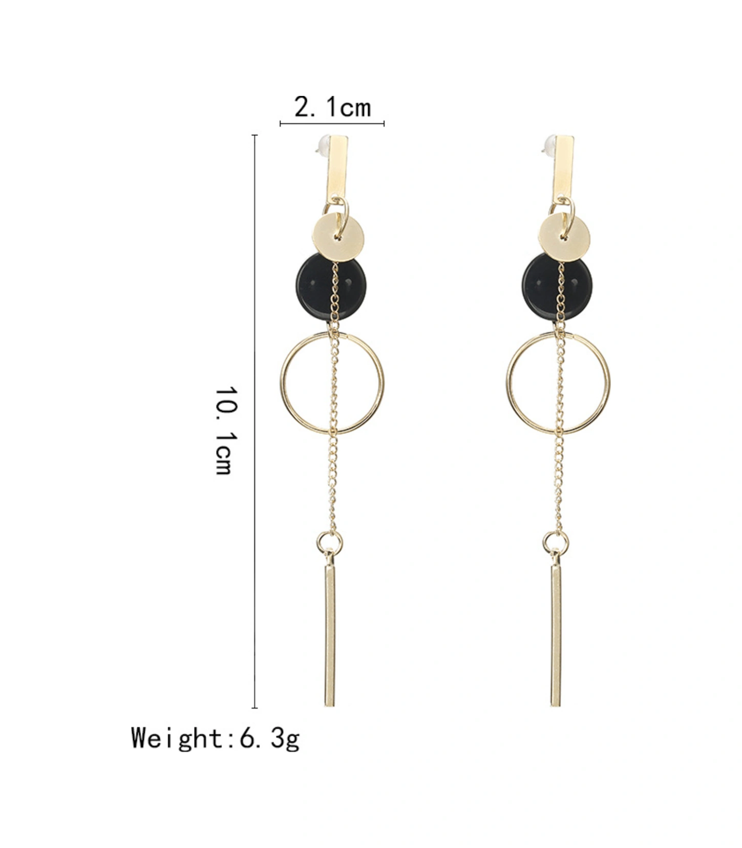 Lemestar Altın Renkli Geometrik Desen Asimetrik Uzun Çubuk Külaklıklar - Alyuminyum Çelik Malzeme Gold