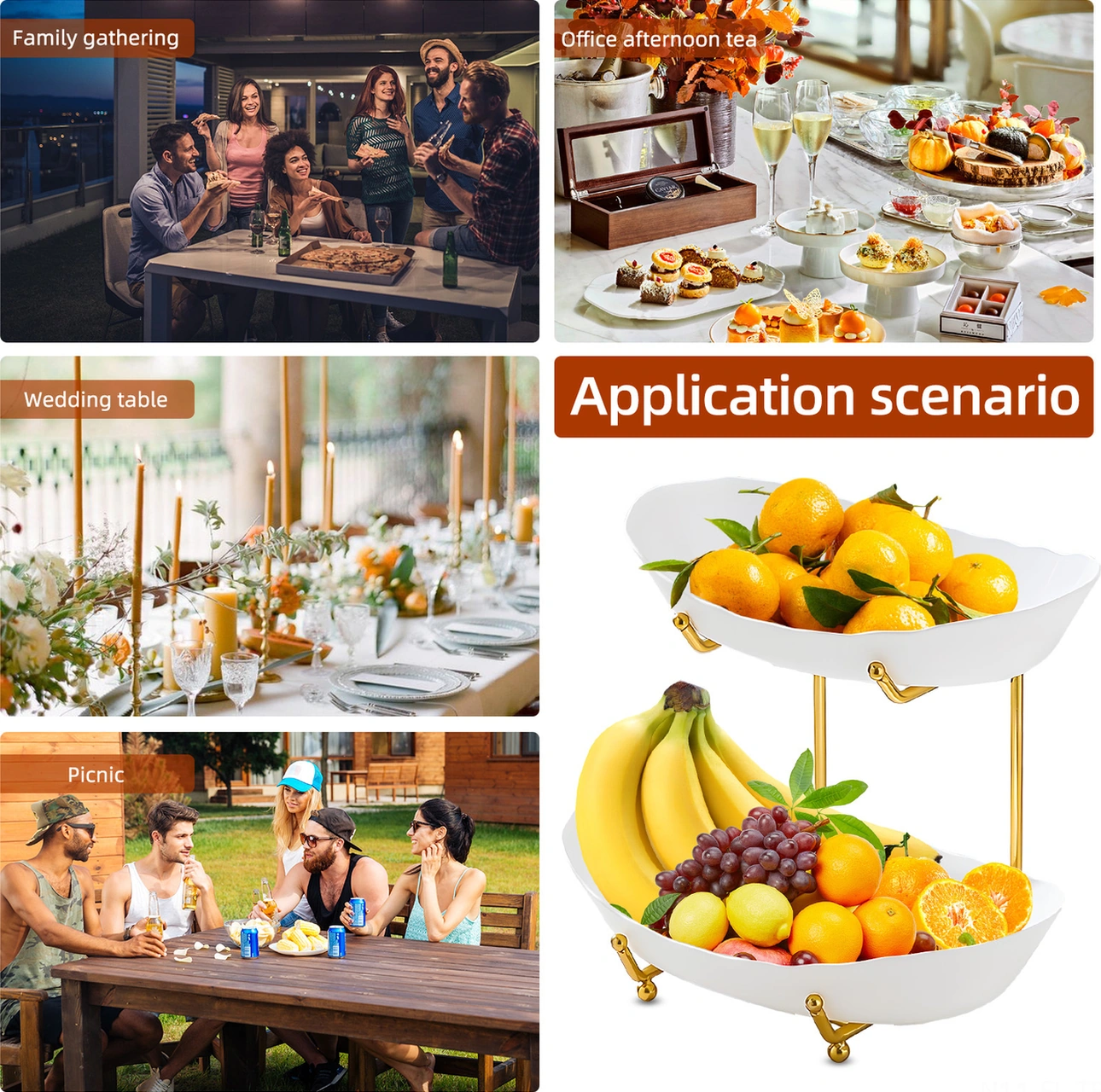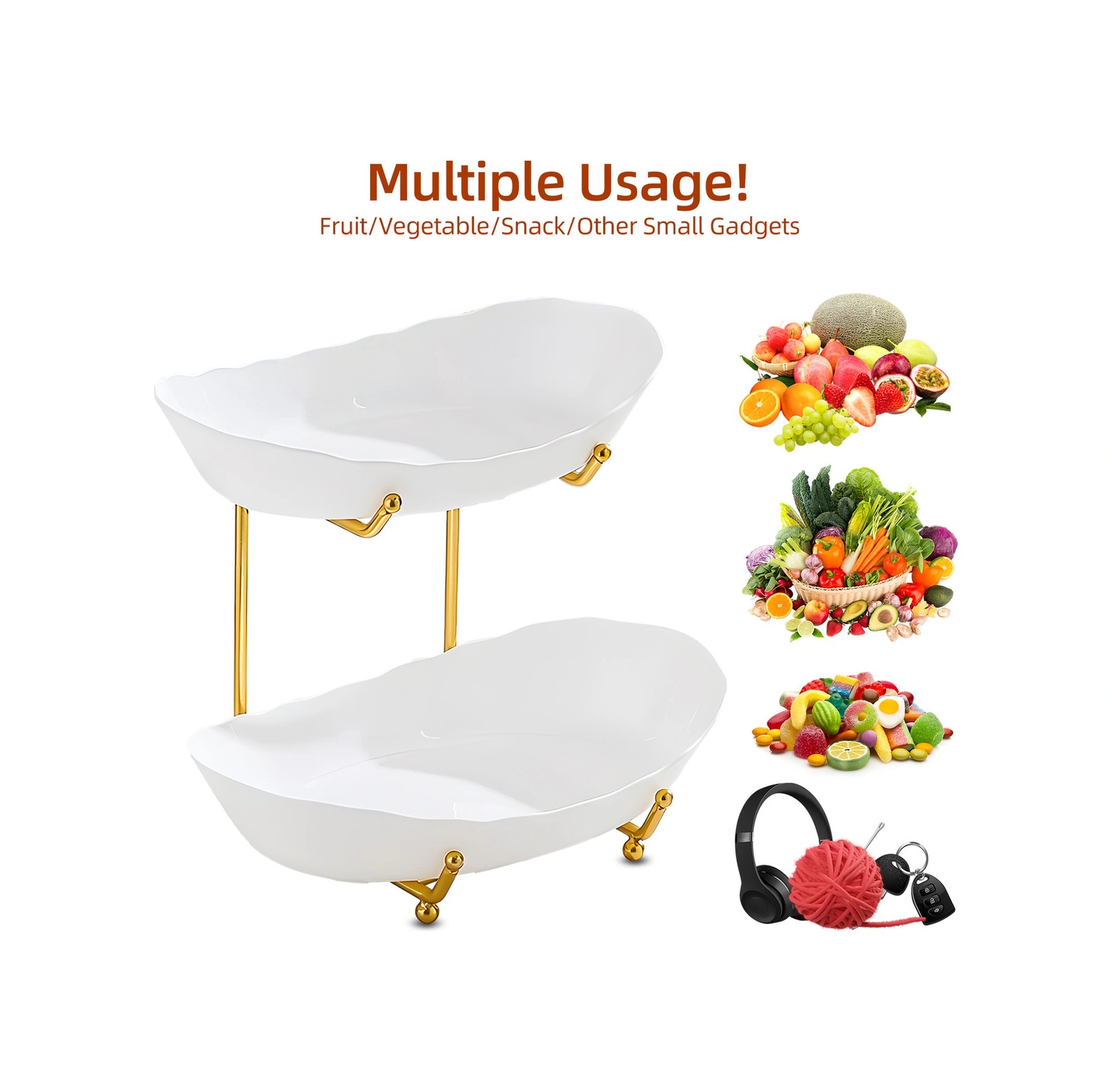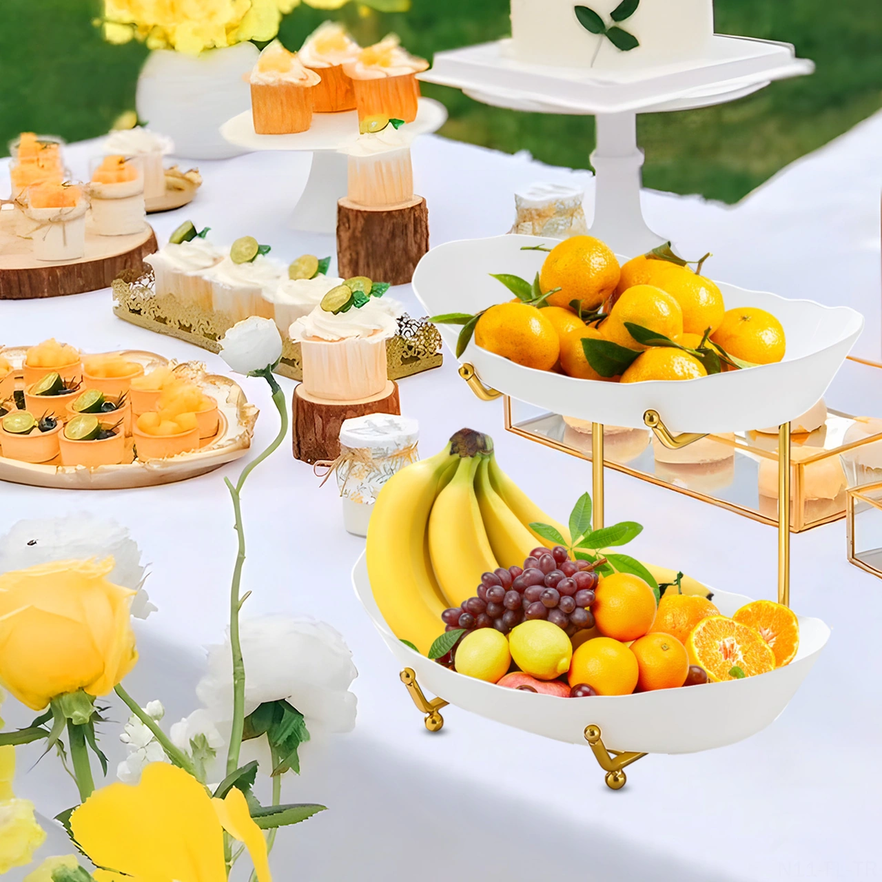 Lemestar Beyaz Akrilik Ve Demir İki Katlı Mutfak Sepeti - Meyve, Atıştırmalık, Tatlı Serim Panosu - Oturma Odası, Çay Masası Dekorasyonu Beyaz