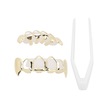 Lemestar Hip Hop Altın Diş Protezi: Delikli Tasarım, Mikro Zirkon Taşlı Zincirli, Üst/alt Dişlere Uygun, Kaliteli Pirinçten Yapım Gold