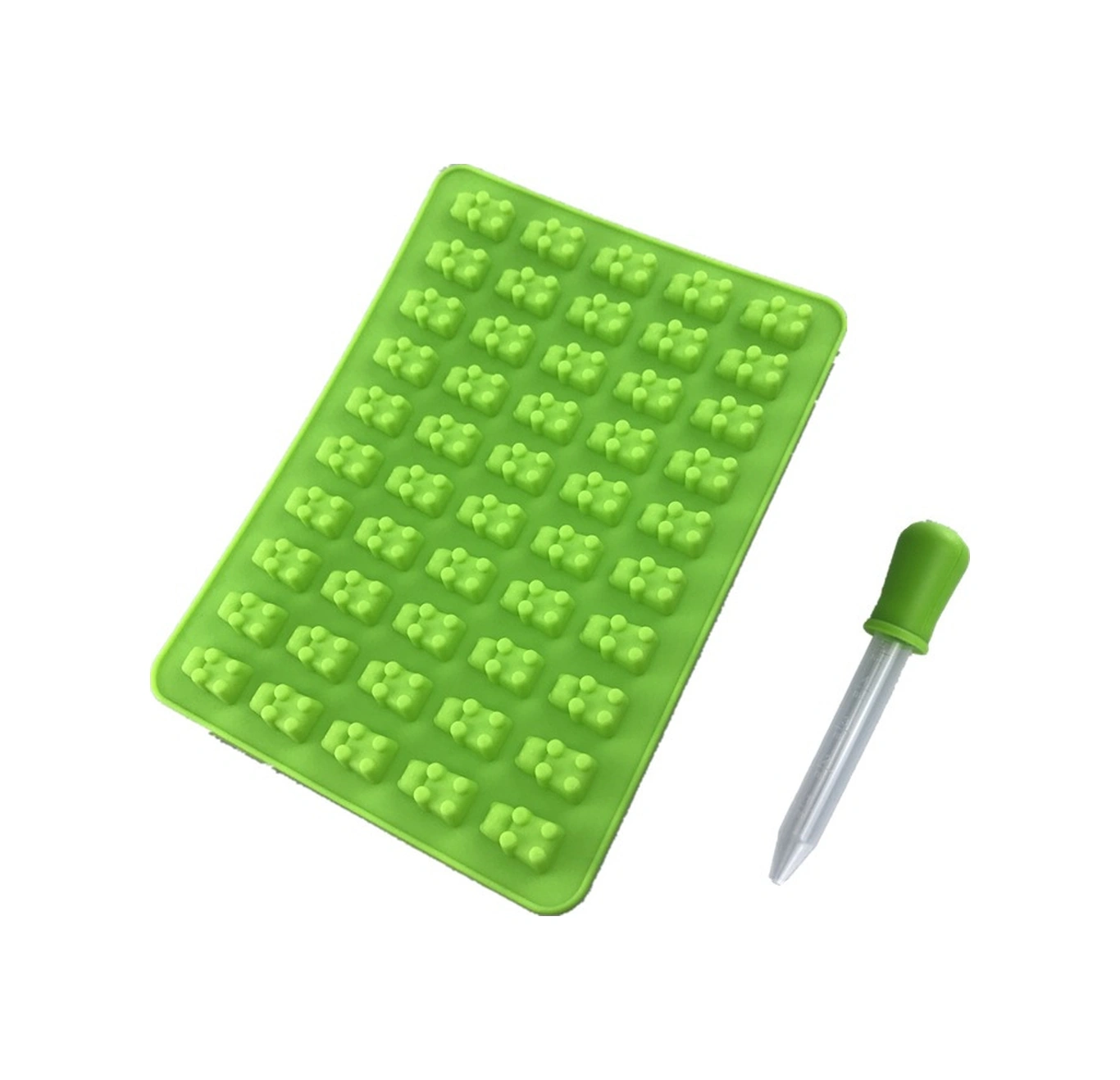 Lemestar Yeşil 50'li Ayı Şekilli Silikon Kalıp Seti: Jeleler Ve Buzluklar İçin 1 Kalıp + 1 Damlatici - Ev Kullanıma Kolay Ve Dayanıklı Çok Renkli