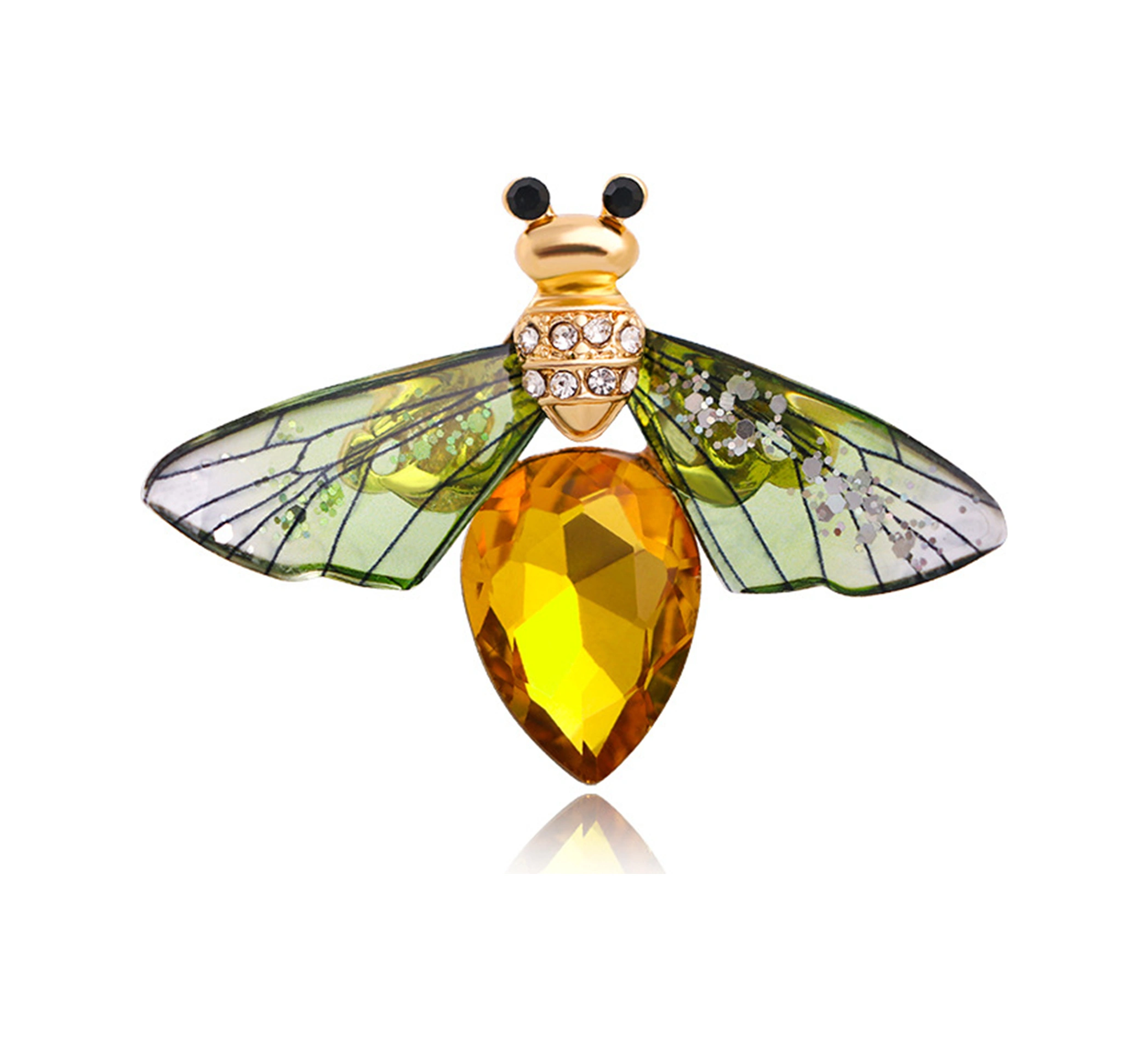 Lemestar Yeşil Yncp6120 Pınar Yapanı Bıçakçık, Yetenekli Böcek Desenli, Elmaslı Ve Kristal Takviye Edilmiş, Yüksek Kaliteli Alaşım Broş Yeşil