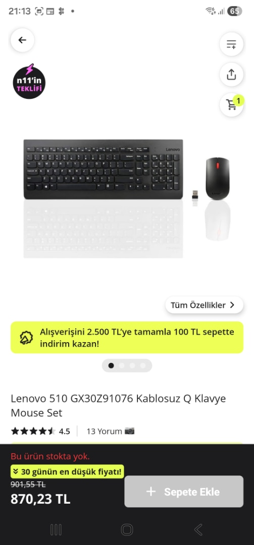 Lenovo 510 GX30Z91076 Kablosuz Q Klavye Mouse Set
