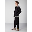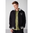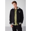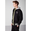 Leon Erkek Kolej Bomber Nakışlı Kontrast Kapüşonlu Çizgili Trikolu Içi Polarlı Bomber Siyah Sweatshi