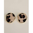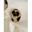 Leopar Asimetrik Oval Yuvarlak Model Küpe Leopar Desenli Çok Renkli
