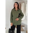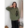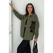 Leopar Ayıcık Armalı Gabardin Kumaş Gömlek Haki Haki