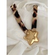 Leopar Desen Bombeli Büyük Yıldız Model Kumaş Detaylı Kolye 46cm Kahverengi - Siyah