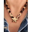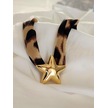 Leopar Desen Bombeli Yıldız Model Kumaş Detaylı Kolye 46cm Kahverengi - Siyah