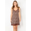 Leopar Desenli Dantel Detaylı Yumuşak Penye Gecelik Takım Ten Ten Rengi