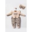 Leopar Desenli Fiyonklu % 100 Pamuk Kız Bebek Tulummm Krem