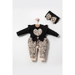 Leopar Desenli Fiyonklu % 100 Pamuk Kız Bebek Tulumu Siyah