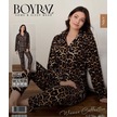 Leopar Desenli Süet Düğmeli Pijama Takımı Kahverengi