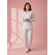 Leopar Ve Çiçek Desenli Pamuklu Penye Kumaş Pijama Takımı Ekru