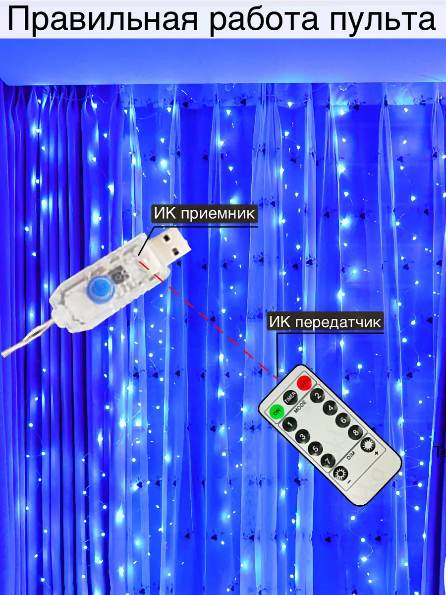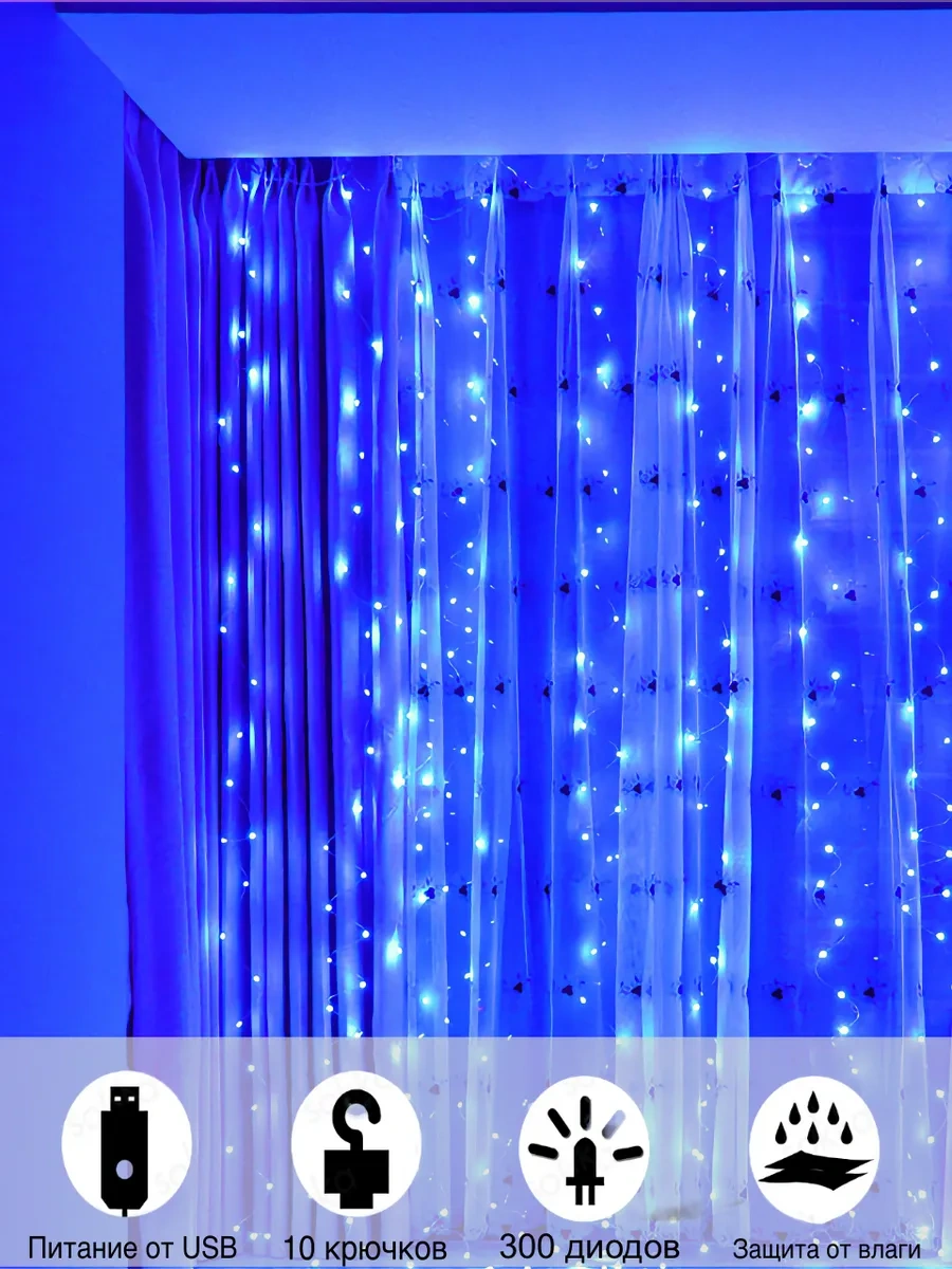 Lesnyak Işık Perdesi 3x3 Usb Mavi Işık 229068569 Mavi