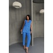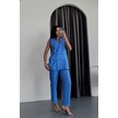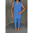 Leyla Sanat Sanata Yeni Bir Bakış Açısı Jakar Kumaş Yelek - Pantolon Takım - Mavi Mavi
