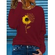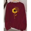 Leyla Sanat Sanata Yeni Bir Bakış Açısı Kadın Uzun Kollu Bisiklet Yaka Ayçiçeği Desenli Viskon Bluz Bordo