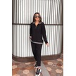 Leyla Sanat Sanata Yeni Bir Bakış Açısı Kadın Uzun Kollu Ribana Ve Fermuar Detay Bluz Ve Yüksel Bel Pantolon 2li Takım Siyah