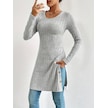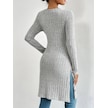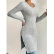 Leyla Sanat Sanata Yeni Bir Bakış Açısı Kadın Uzun Kollu Yuvarlak Yaka Yandan Yırtmaçlı Düğmeli Şardonlu Kaşkorse Bluz Gri