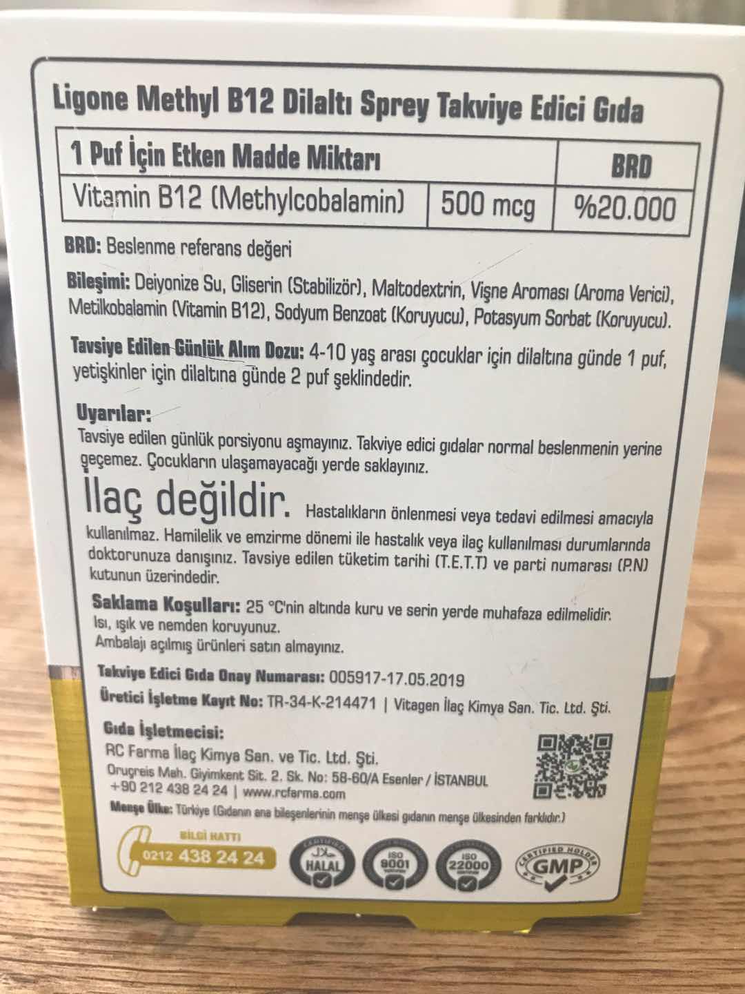 Ligone Methyl B12 Dilatı Sprey 30 ML