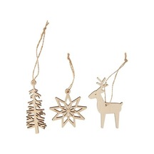Lijinxu 3 Parça Ahşap Kar Tanesi Geyik Noel Ağacı Asılı