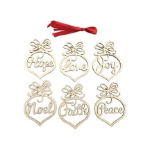 Lijinxu 6 Adet Noel Ahşap Kesme Içi Boş Kalp Etiketleri Asılı
