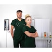 Likralı Cerrahi Forma Unisex Hemşire Doktor Sağlıkçı Forması Scrubs Üniforma Çam Yeşili