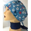 Likralı Doktor, Hemşire Bonesi, Cerrahi Bone, Dişçi Desenli Renkli Bone, Medikal Bone Mavi - Beyaz